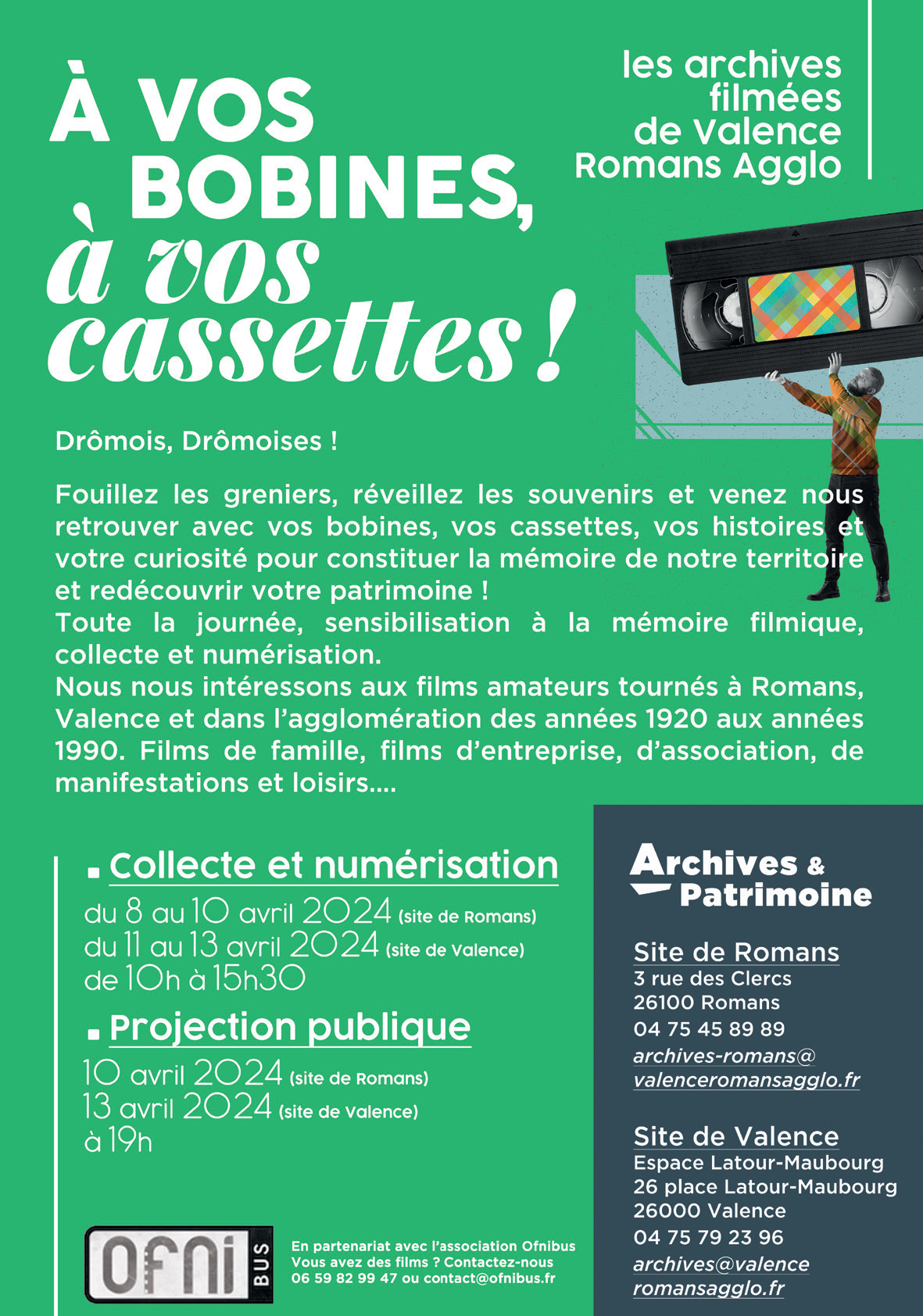 Fouillez les greniers, réveillez les souvenirs et venez nous retrouver du 8 au 13 avril avec vos bobines, vos cassettes, vos histoires et votre curiosité pour constituer et redécouvrir votre patrimoine!